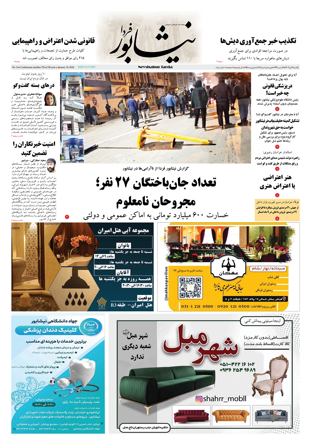 گزارش نیشابور فردا از ناآرامی‌ها در نیشابور