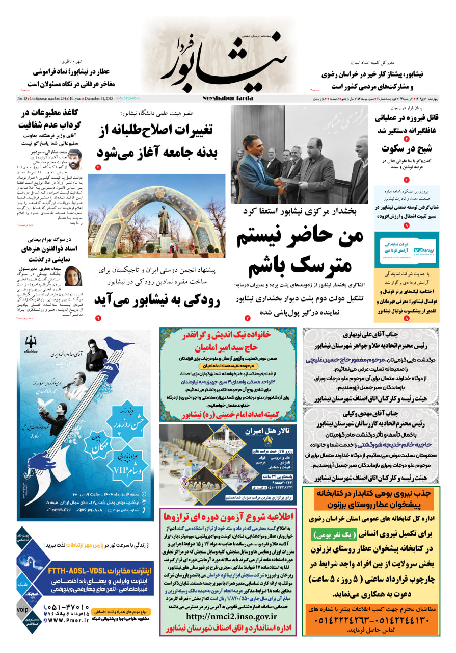 تشکیل کمیته حقیقت‌یاب در نیشابور خواست به حق شهروندان ۳۰ دی ۱۴۰۴
